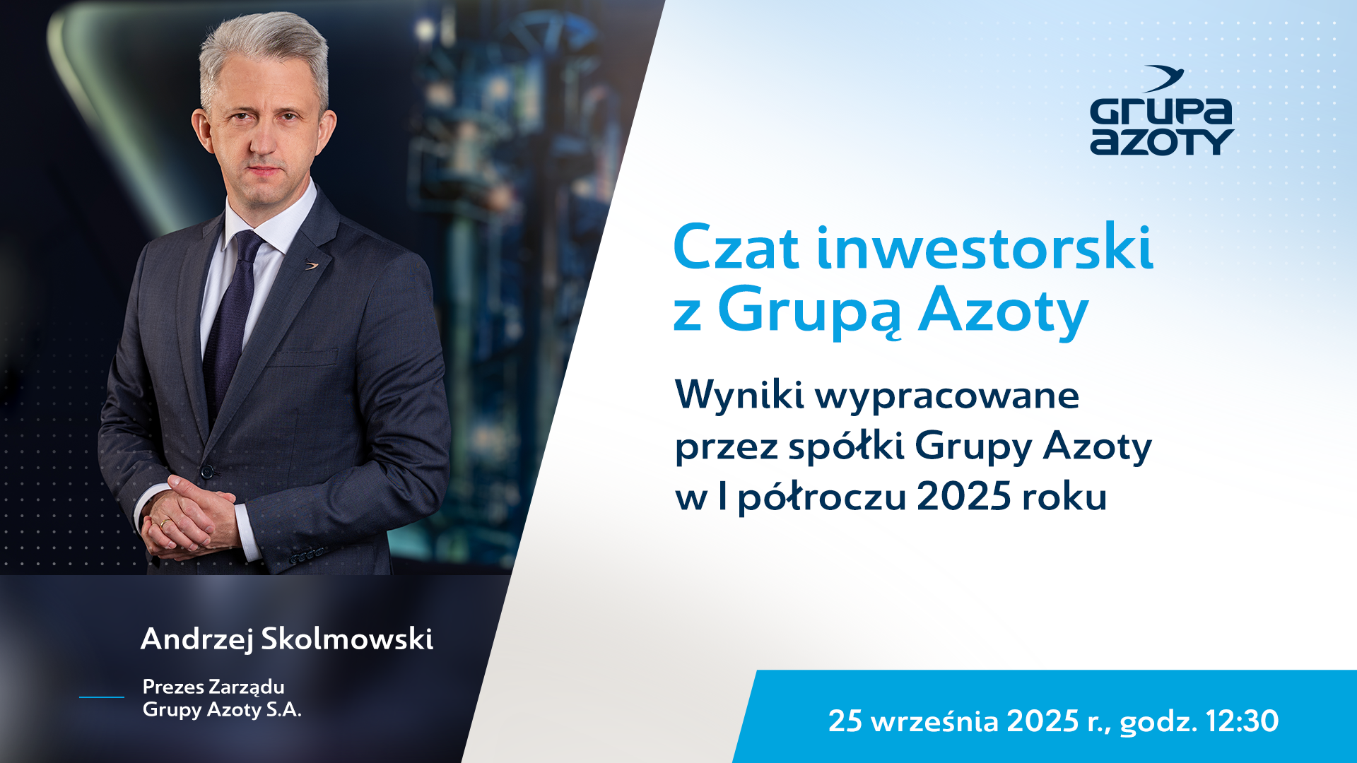 W czwartek, 25 września 2025 roku o godz. 12:30 odbędzie się czat z Andrzejem Skolmowskim, Prezesem Zarządu Grupy Azoty S.A.